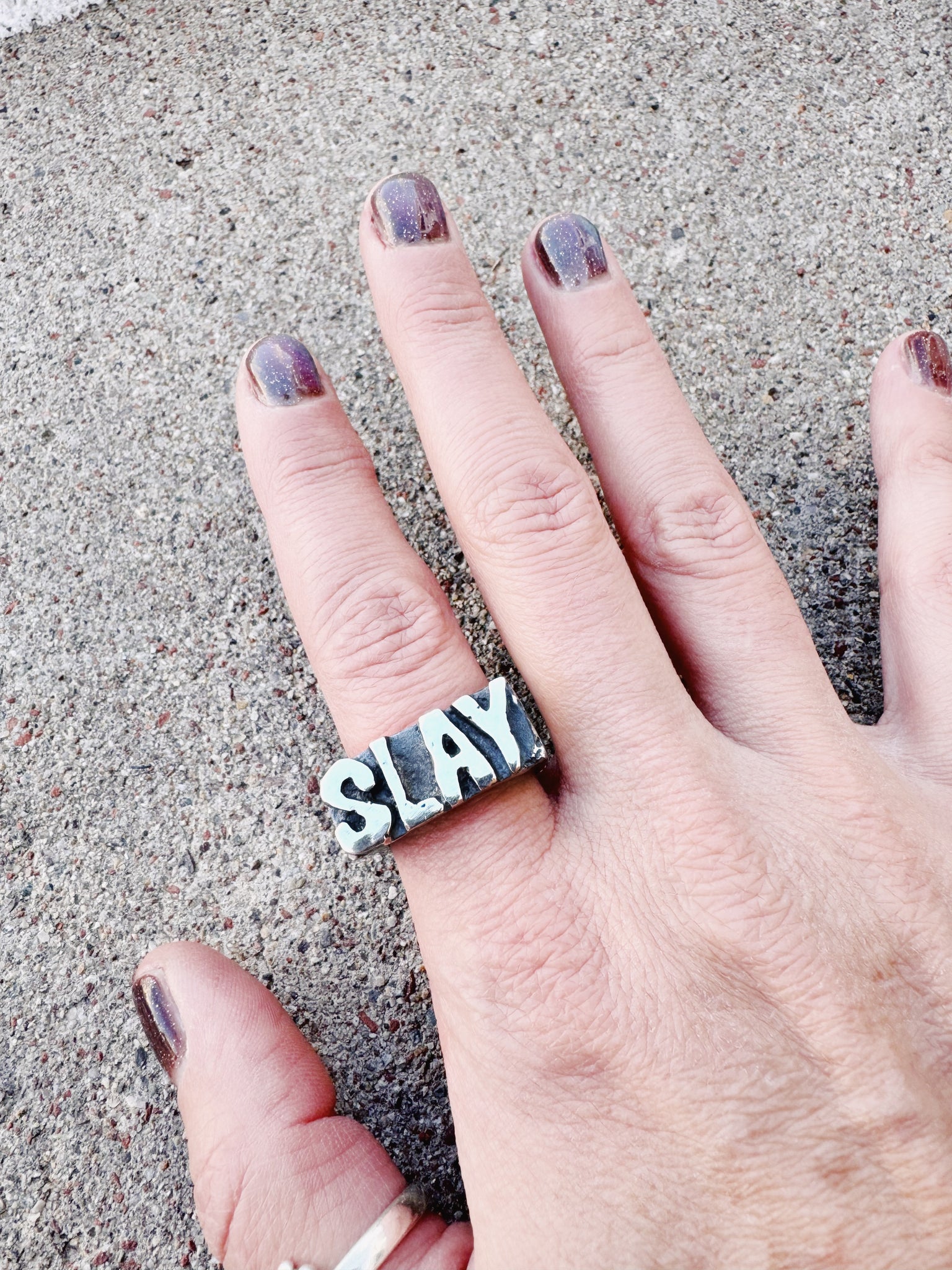 A modern signet ring for the language of now. The Zeitgeist Ring is a chunky, unisex silver band carved with the words that define a moment. It captures fleeting slang in something built to last. It nods to tradition while quietly rewriting it.